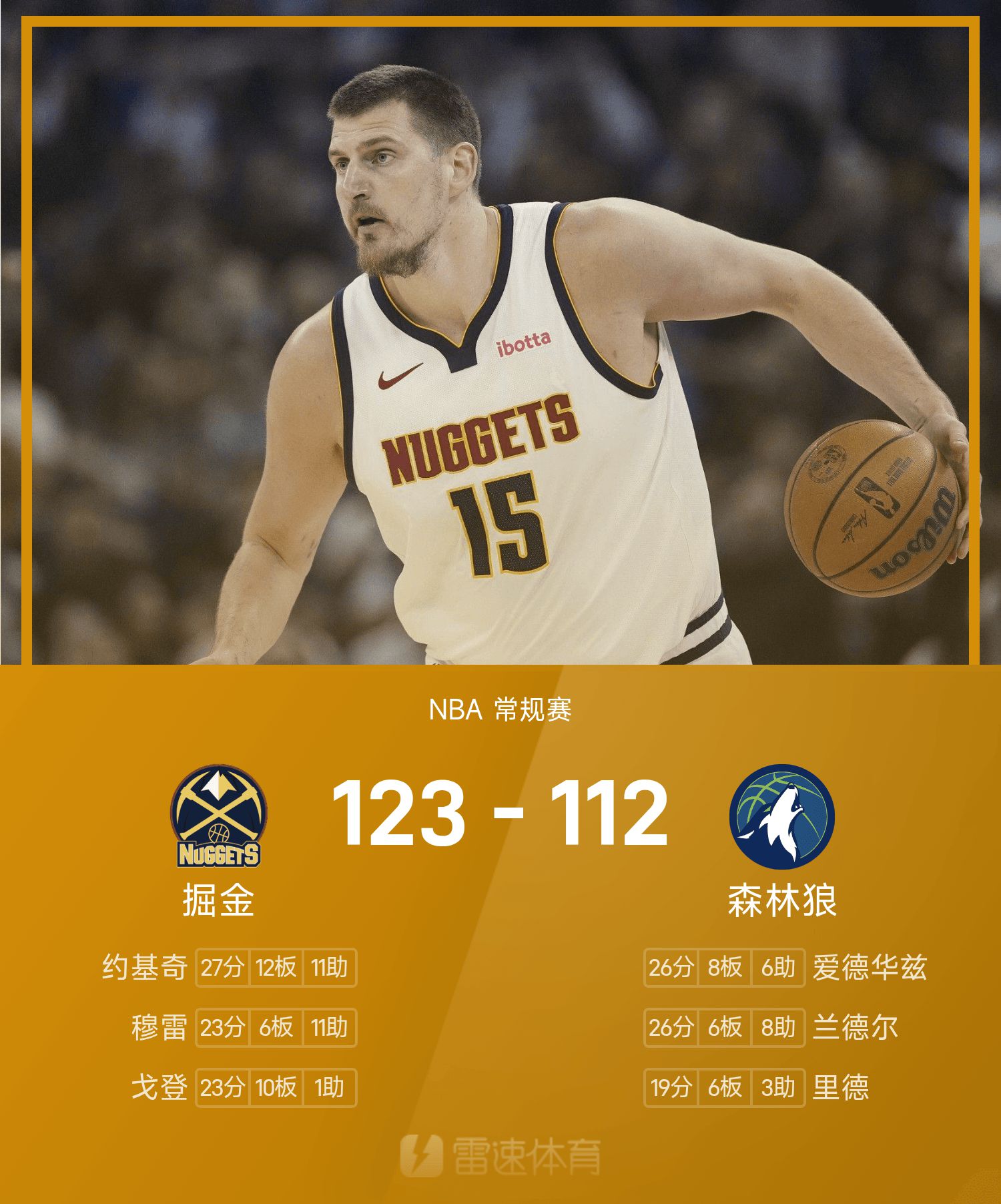 約基奇掘金27分三雙帶領金拿輕取灰狼。