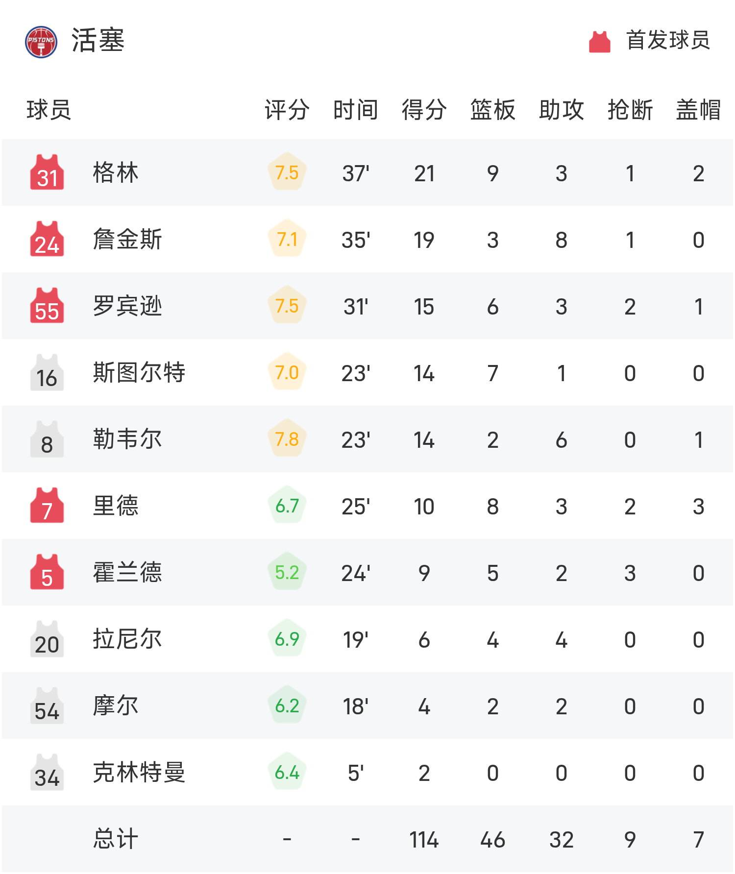 NBA盃戰報:詹金斯19分8助,活塞114-105擊敗76人