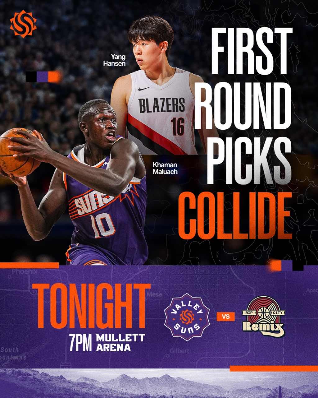 其中剛開拓者被下放至發展聯盟的中國球員楊瀚森將迎來發展聯盟首秀,本場競賽將首發登場。