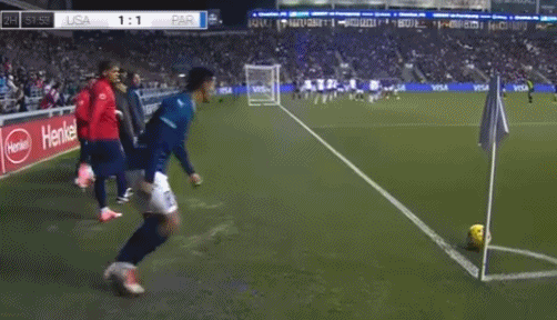 18’有點正!美國隊獲得絕佳機會,但最後的打門太正被吉爾撲下