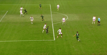 77’塞尔吉尼奥三秒区前沿得球,迎着2名后卫外围射门,皮球擦柱而出