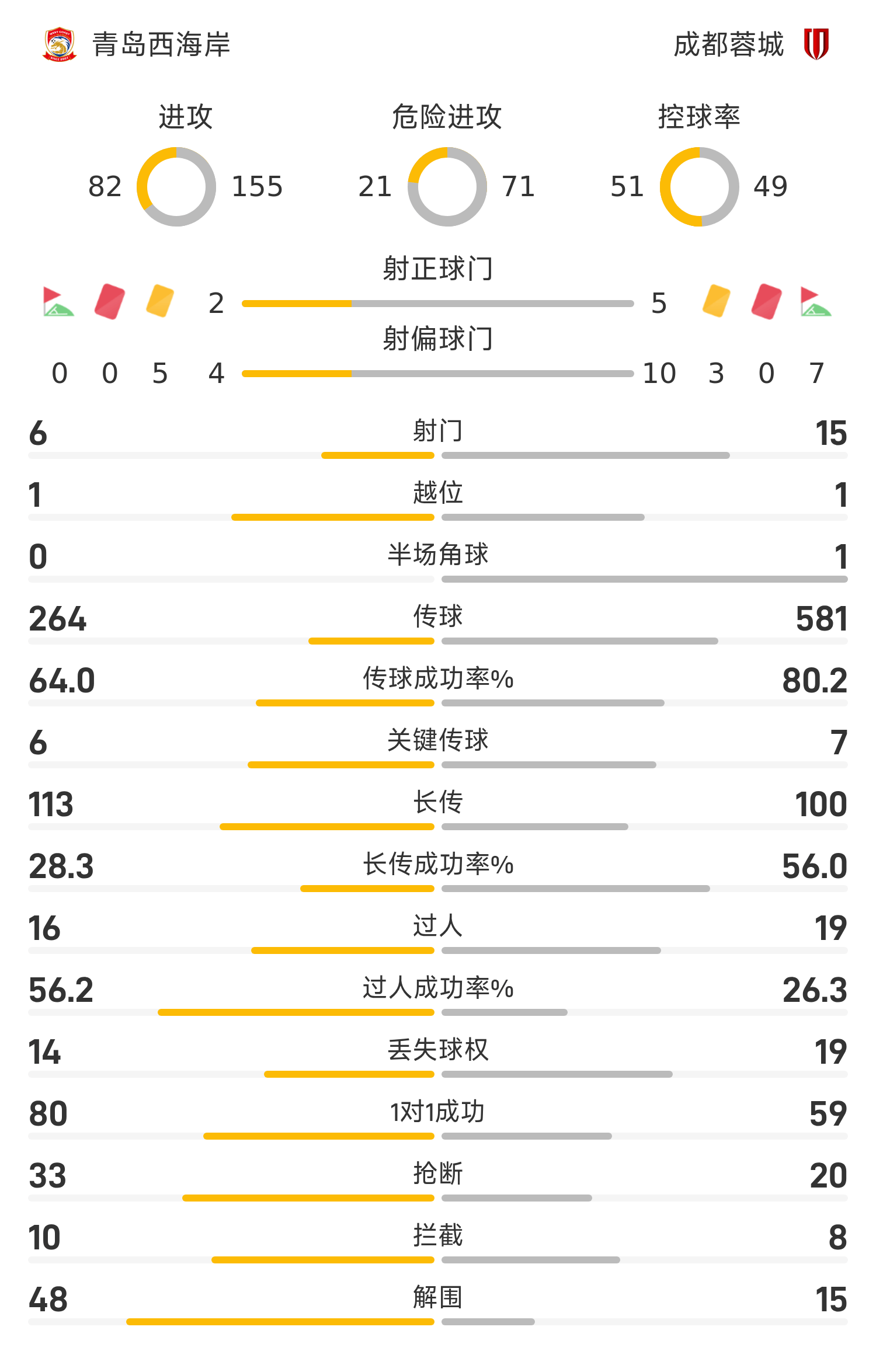青島西海岸先發陣容:1-李昊、5-里切利、22-楊希、17-陳柏良(73’8-張修維)、24-段劉浩(86’14-馮宇)、20-何剛海海(4113’徐彬、23-馬特烏斯、11-戴維森、10-內爾松(86’68-方海洋)、9-阿齊茲
