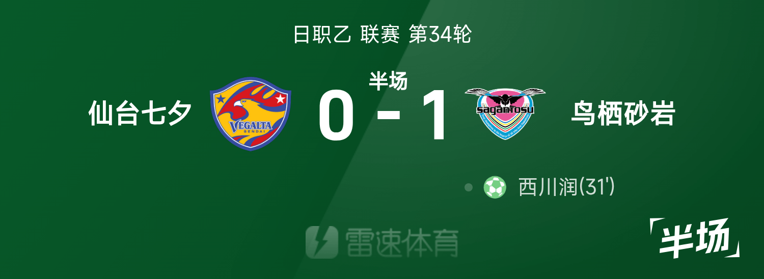 日職乙半場:西川潤點射建功,鳥棲砂岩暫1-0仙台七夕
