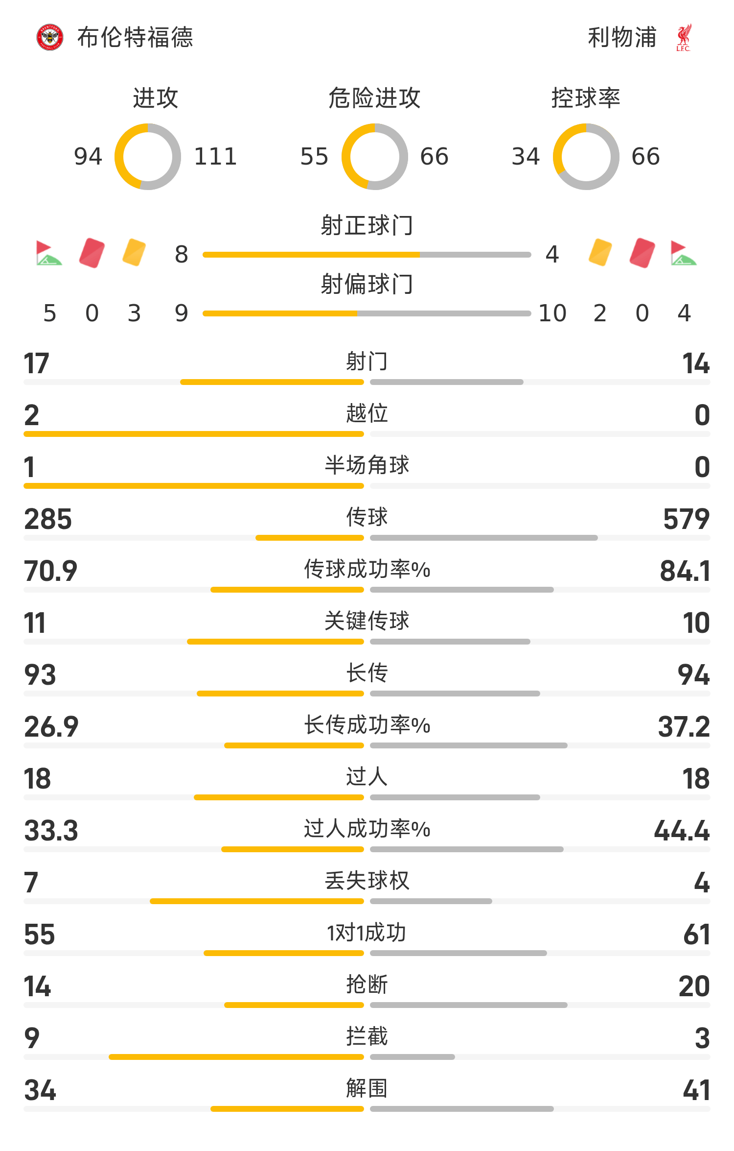 英超戰報:蒂亞戈點射,利物浦2-3布倫特福德,聯賽事4連敗