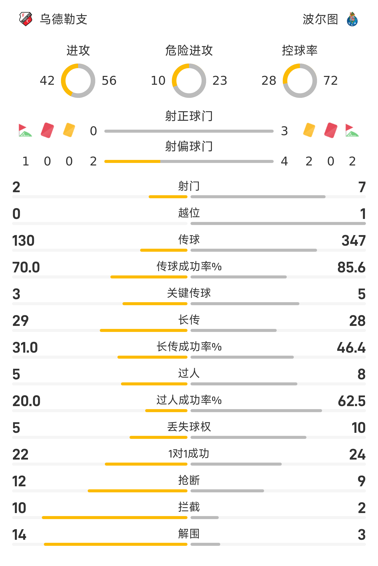 歐聯半場:維加造險,卡拉瓦尼險烏龍,烏德勒支0-0波爾圖